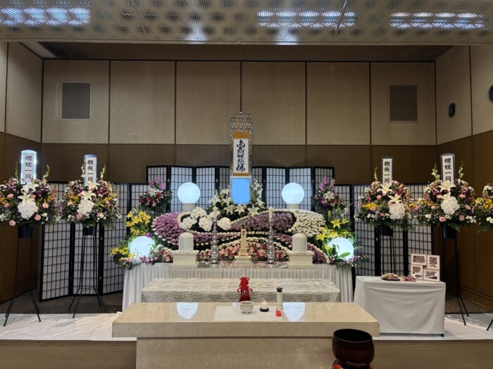 大阪市立北斎場の中式場にて、ご親族15名様での家族葬をお手伝いいたしました 。故人様は非常に穏やかな方だったと伺いましたが、集まられた皆様もそのお人柄を映したように明るく、終始なごやかな空気が流れるお式となりました 。