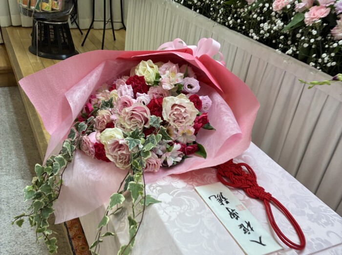担当として特に大切にしたのは、故人様が大好きだった「ピンク色」で最後を彩ることです。お棺の中を胡蝶蘭で敷き詰め、仕上げに大輪のピンクの百合を納めていただいた際には、皆様が「本当によく似合うね」としみじみ語り合っておられました 。また、お孫様やひ孫様との再会を楽しみにされていた故人様が用意していた「お年玉」を、式の終わりに喪主様から皆様へ手渡されるお手伝いをいたしました。「おばあちゃんからやで」という言葉に、会場全体が温かな涙に包まれた瞬間が非常に印象的でした 。
