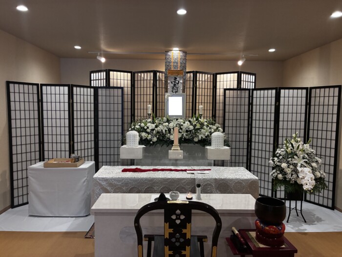 生野区にある「おわかれながや」にて家族葬をお手伝いいたしました。ご主人の突然の訃報に、ご遺族は戸惑いの中にいらっしゃいましたが、親しい方々11名が集まり、故人様の歩みを穏やかに振り返る静かな時間が流れました。