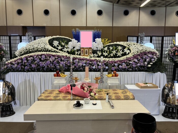 お式の中で特に大切にしたのは、ご家族が強く希望された伝統の民族衣装、「チョゴリ」のディスプレイです。故人様の人生のルーツや誇りを象徴するその美しい衣装を、皆様に見ていただけるよう祭壇横に飾らせていただいたところ、ご遺族からも大変喜んでいただけました。106年という歳月が生んだ絆は深く、参列されたほとんどがご親族ということもあり、式場内はまるで故人様を囲む「宴会」のような、賑やかで晴れやかな時間が流れていました。