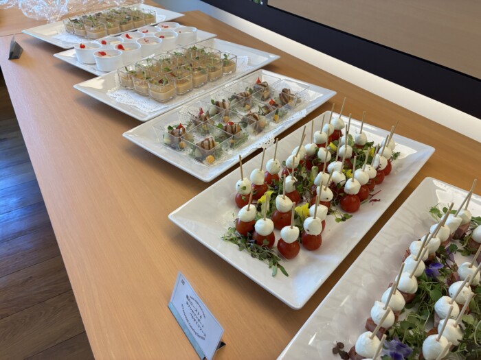 2階会食室にて「最近の通夜料理ミニ試食会」を開催、こんなパーティーのようなオードブルがたくさん並んで、いままでの通夜振舞いとは、一味違った内容で皆さんに試食していただきました(※通夜で利用される際は、日程やお人数などに条件がございますので、お問合せください)