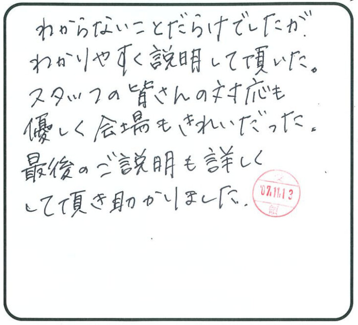 わからないことだらけでしたが、わかりやすく説明して頂いた。