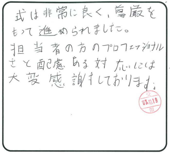 担当者の方のプロフェッショナルさと配慮ある対応には大変感謝しております。